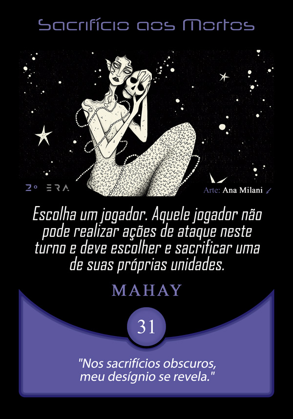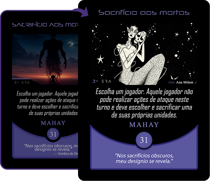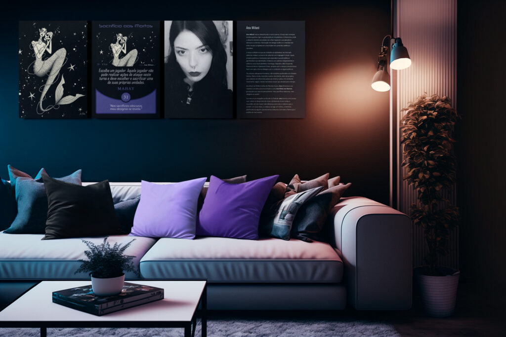 Ao entrar na Órbita Criativa do Planeta Insano, Ana direcionou sua maestria narrativa para transmutar a carta Sacrifício aos Mortos. Guiada pelo pensamento: “Nos sacrifícios obscuros, meu desígnio se revela”, ela nos convida a um mergulho profundo na finitude e no vazio que engole tudo.