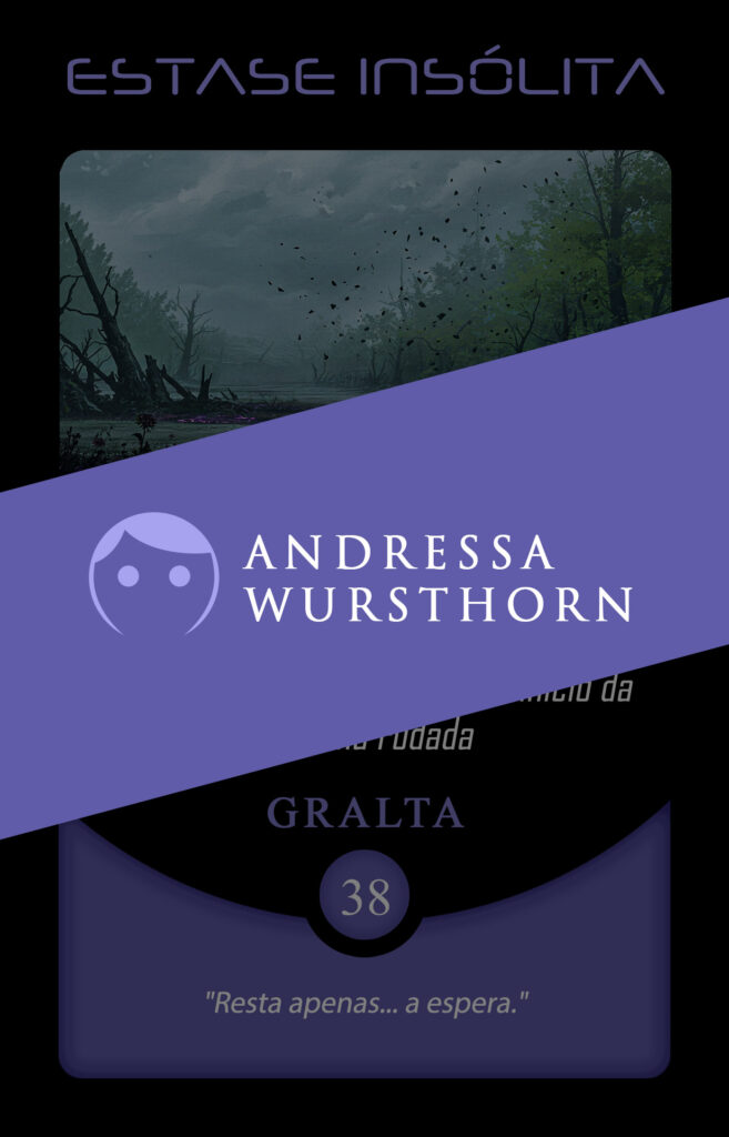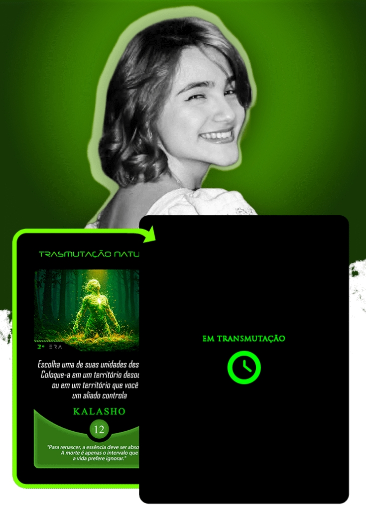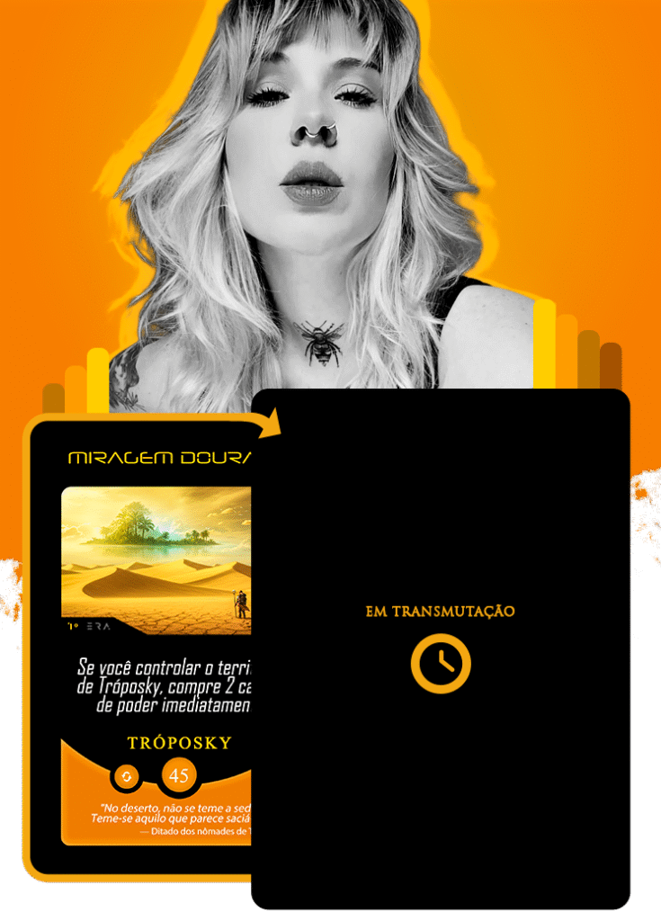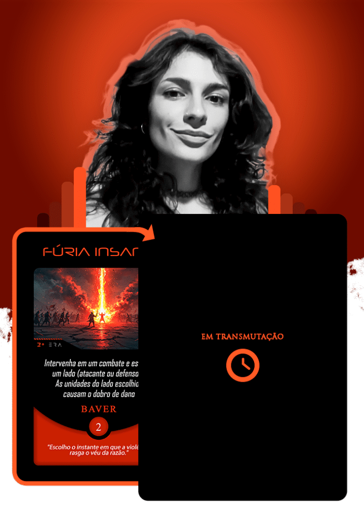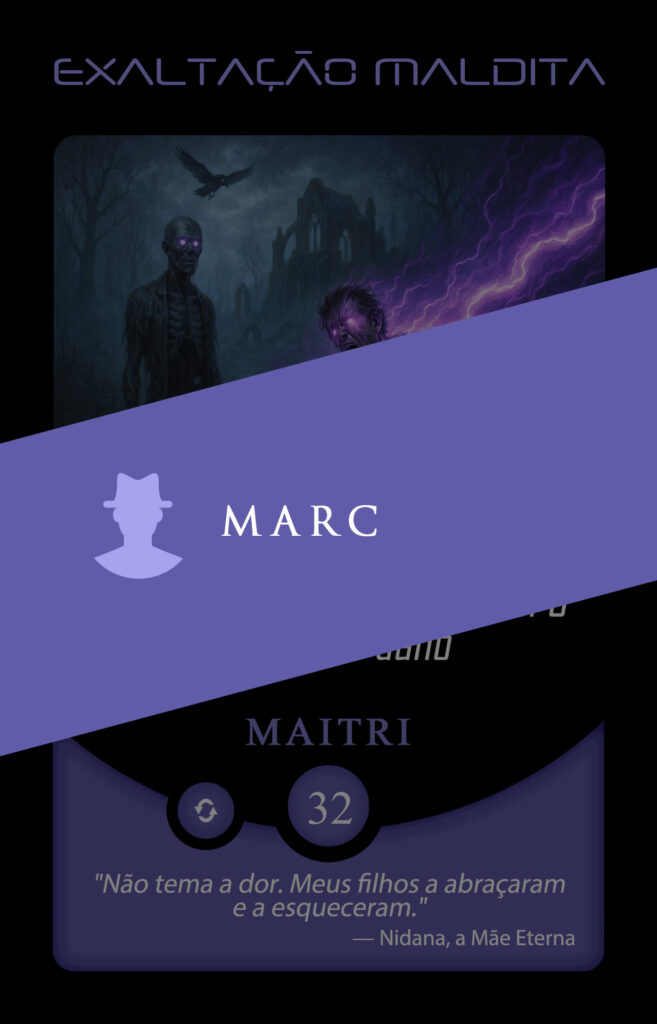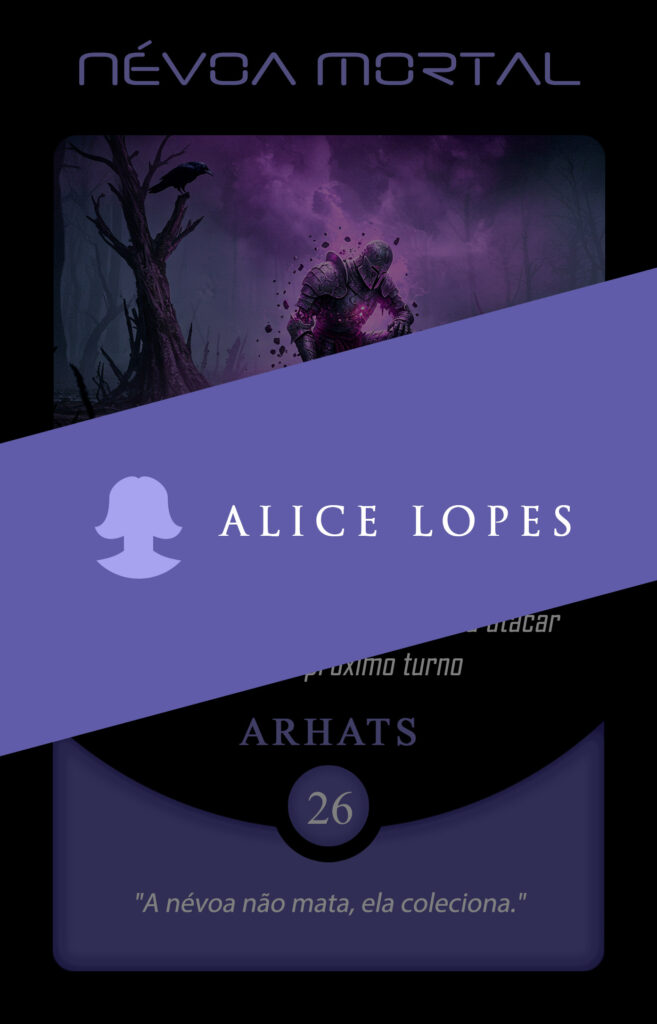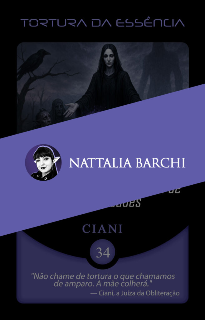 No universo do Planeta Insano, Fabi assume a transmutação da carta Vínculo Maldito, mergulhando na estética sombria da Região Roxa, onde vida e morte coexistem sob a névoa eterna de Nidana.