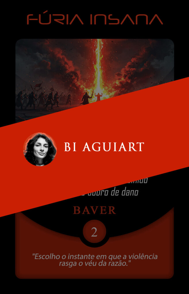No Planeta Insano, Bi escolheu reinterpretar a carta Fúria Insana, cujo pensamento ecoa: “Escolho o instante em que a violência rasga o véu da razão.”