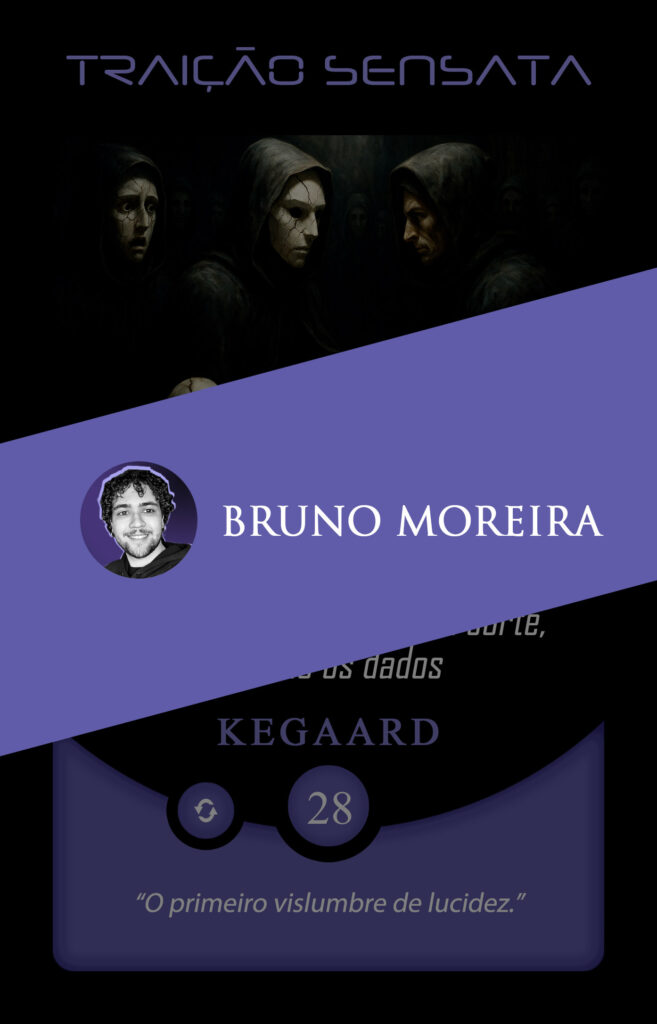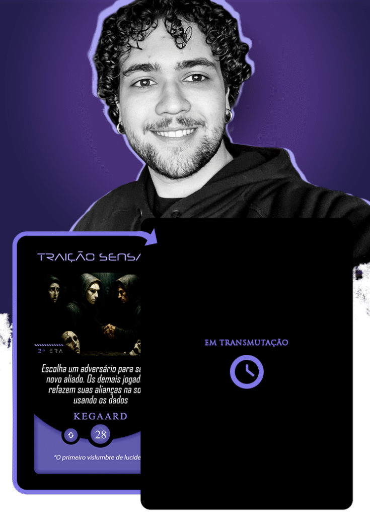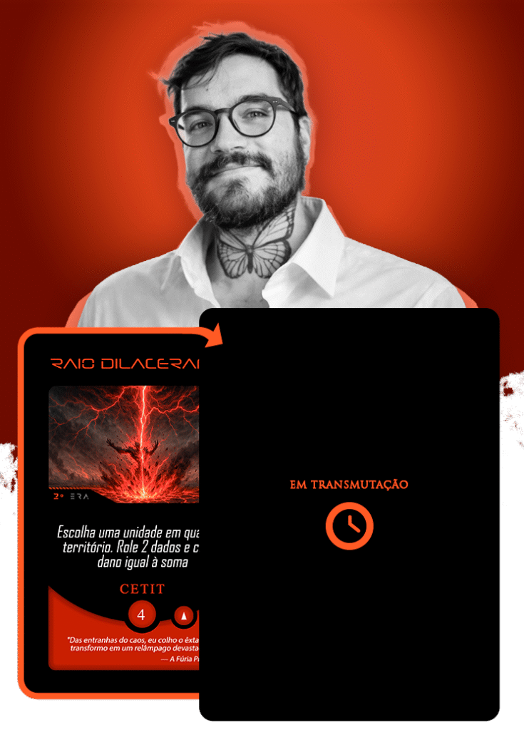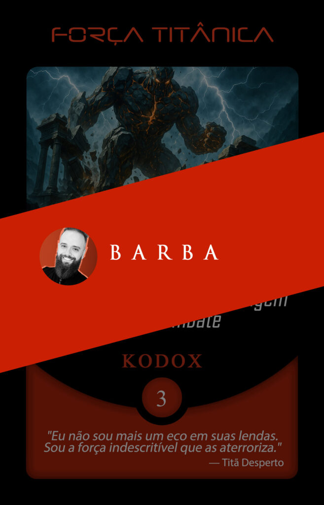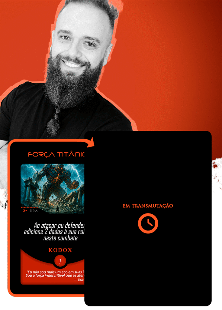 Toda essa bagagem focada em construir personagens de presença absoluta tornou a sua chegada ao Planeta Insano um evento de grandes proporções. Em nossa Órbita Criativa, ele assumiu a transmutação da carta Força Titânica, ancorando sua visão em um pensamento avassalador: “Eu não sou mais um eco em suas lendas. Sou a força indescritível que as aterroriza.”