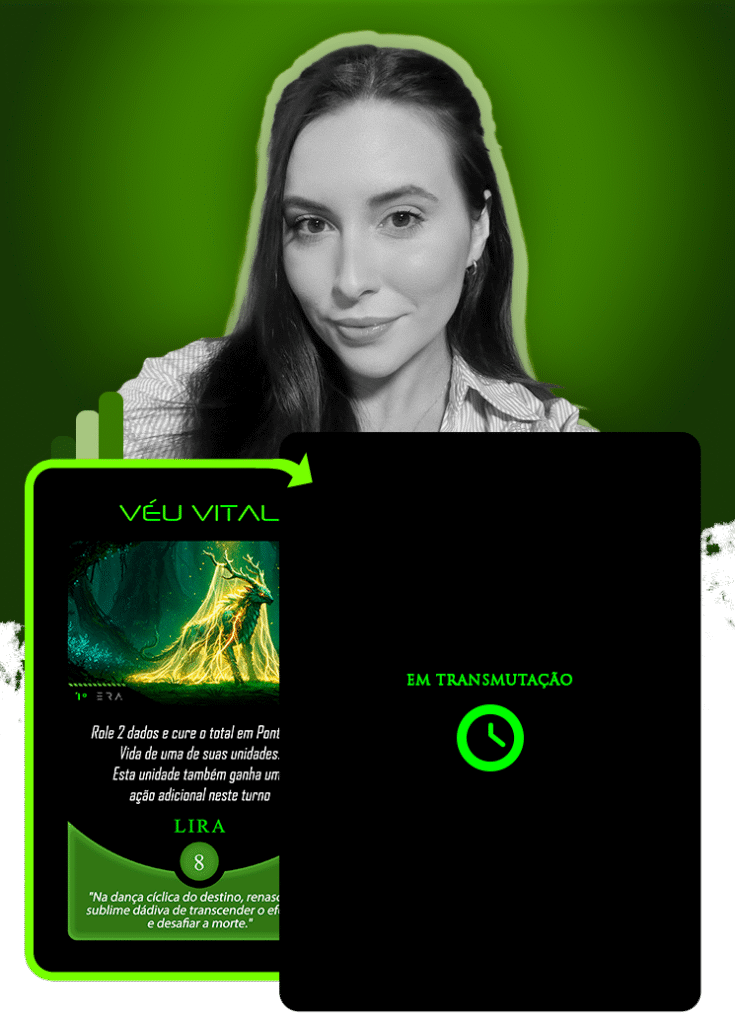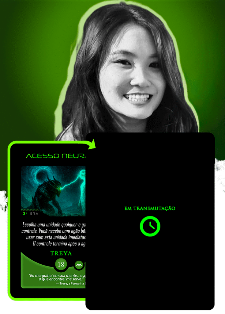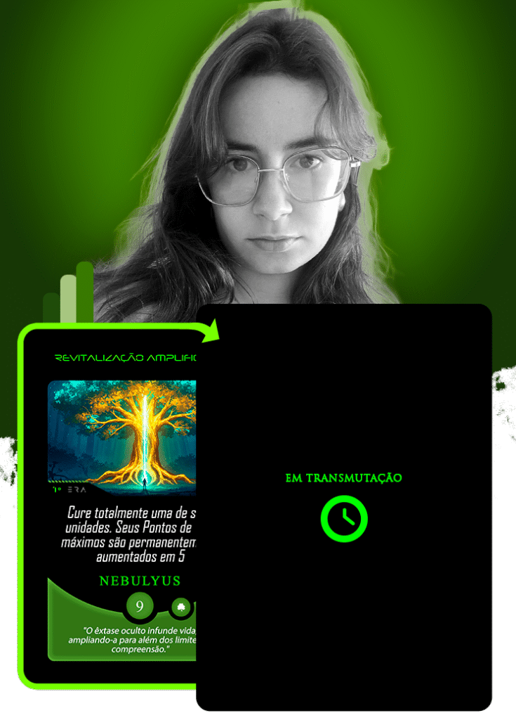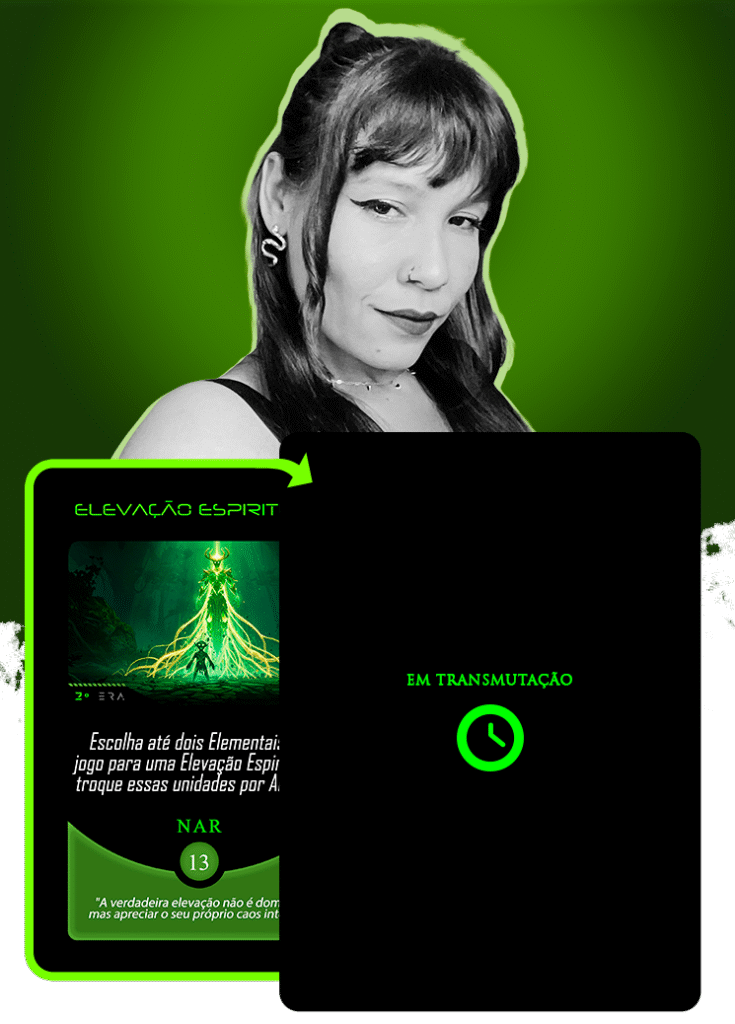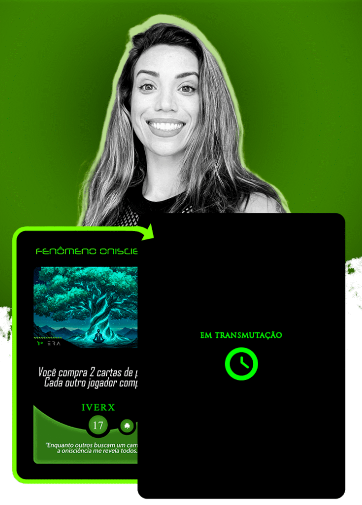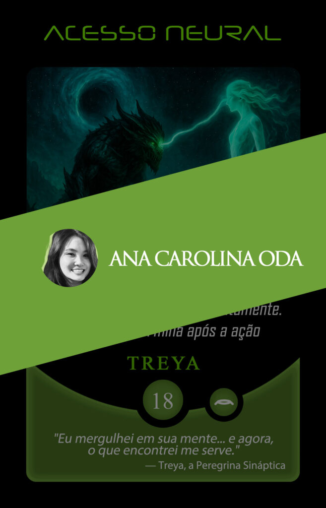 No universo do Planeta Insano, Ana Carolina atendeu ao chamado para transmutar a carta Acesso Neural, guiada pelo eco de Treya, a Peregrina Sináptica: “Eu mergulhei em sua mente… e agora, o que encontrei me serve.”
