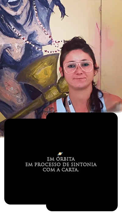 Ao entrar em nossa Órbita Criativa, Rebeca assumiu a transmutação da carta Clarividência, ancorando a sua arte em um pensamento genial: “A clarividência não é ver o passado, presente ou futuro, mas escolher qual eco ouvir primeiro.”