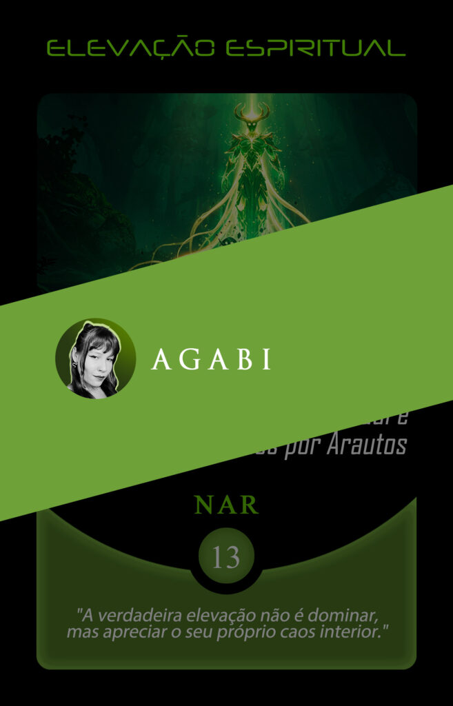 Ao entrar em nossa atmosfera, AGABI assumiu a transmutação da carta Elevação Espiritual, ancorando sua arte em um pensamento poderoso: “A verdadeira elevação não é dominar, mas apreciar o seu próprio caos interior.”