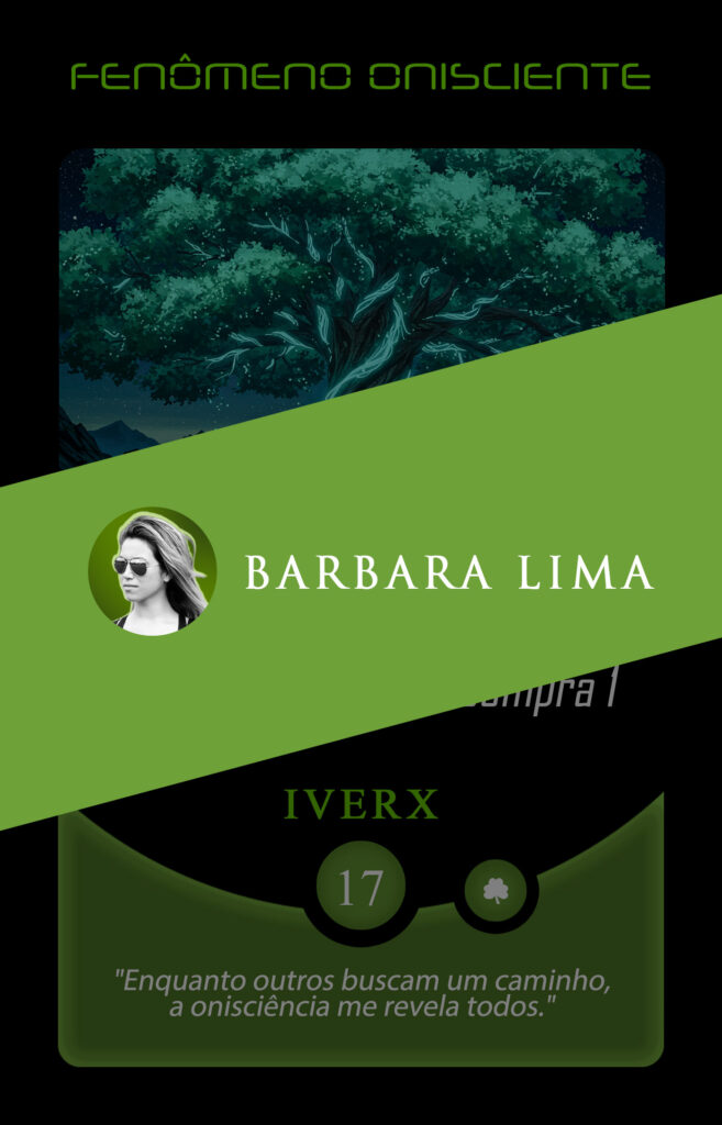 Essa habilidade ímpar de organizar múltiplas visões e entender a grande teia que conecta o mundo faz dela uma verdadeira oráculo contemporânea. Ao aterrissar na Órbita Criativa do Planeta Insano, Barbara assumiu a transmutação da carta Fenômeno Onisciente, ancorando sua visão no pensamento: “Enquanto outros buscam um caminho, a onisciência me revela todos.”