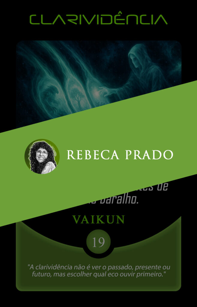 Ao definir a clarividência como a sabedoria de “escolher qual eco ouvir”, Rebeca eleva o poder da carta a um novo patamar, provando que a verdadeira visão não está nos olhos, mas na sensibilidade de escutar os sinais certos em meio ao caos. Sua arte não apenas ilustra o nosso universo; ela nos ensina a ouvi-lo.