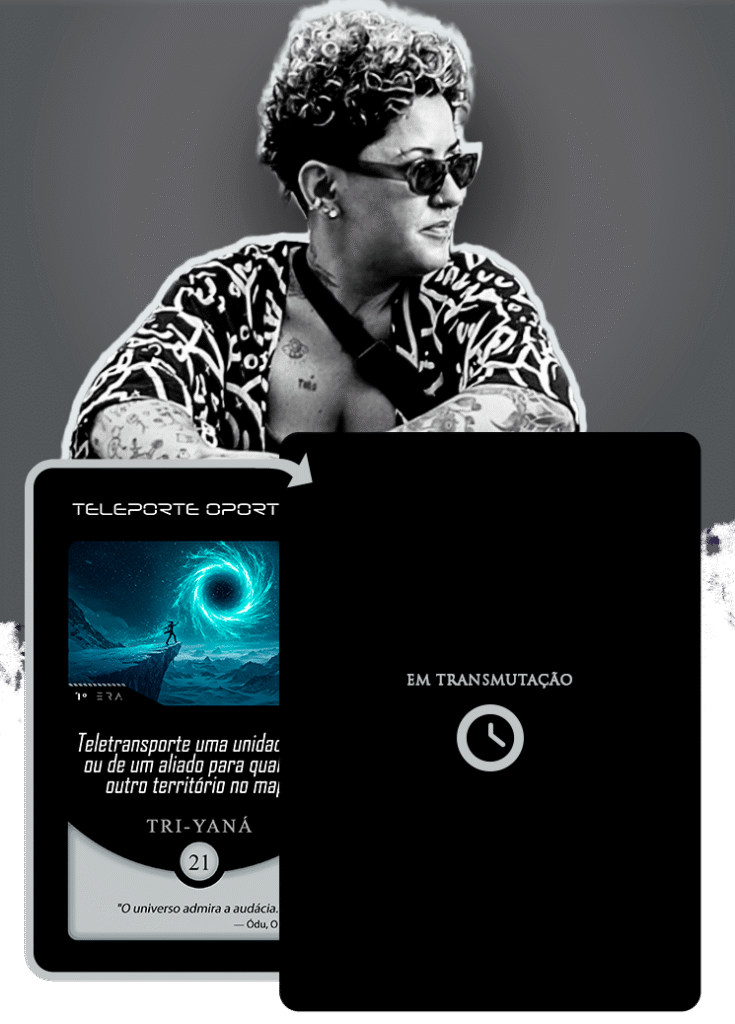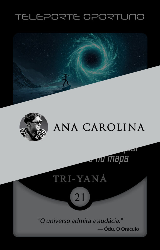 Essa missão de conectar pessoas através da arte reflete perfeitamente o nosso próprio manifesto, que busca usar a imaginação para promover a conexão humana longe das telas. Ao aterrissar em nossa Órbita Criativa, Ana assumiu a transmutação da carta Teleporte Oportuno, e o fez guiada por um pensamento que ecoa diretamente as palavras de Ódu, o Oráculo do nosso mundo: “O universo admira a audácia.”