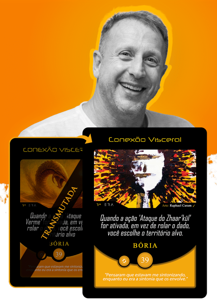Ao assumir a transmutação da carta Conexão Visceral, Raphael mergulha no território do deserto primordial. Sua linguagem matérico-expressiva transforma o silêncio árido em presença intensa, onde força e contemplação coexistem. A carta deixa de ser apenas estratégia e passa a ser experiência sensorial.