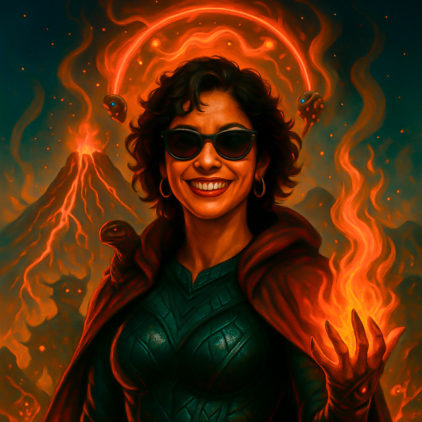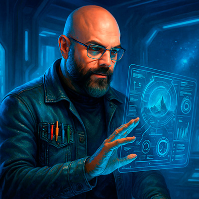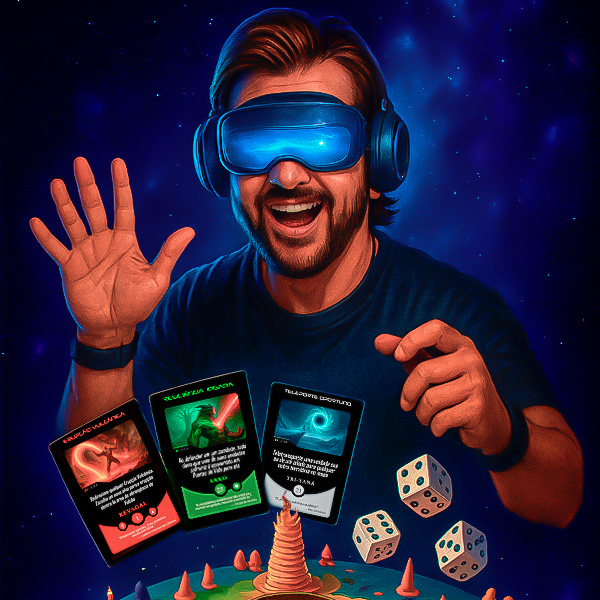 Criador do Planeta Insano. É ele quem conduz o fio da criação, costurando ideias, desenhando cartas, escrevendo lendas e conectando tudo com amor. Um viajante cósmico que vive entre o game design, a poesia e a filosofia do caos criativo.