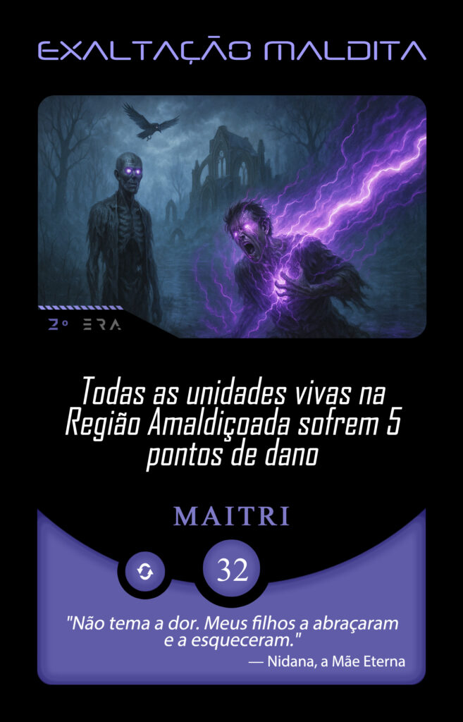Na escuridão pútrida da Região Amaldiçoada, cada sopro da névoa carrega consigo um poder ancestral. Estes são apenas alguns dos efeitos de Nidana sobre aqueles que ousam atravessar seus domínios. Cada sopro da névoa púrpura é um gesto da Mãe. Seu toque não é bênção, mas sentença: o corpo permanece, a alma se desfaz. Estes poderes são ecos de sua vontade infinita.